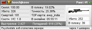 | awp_dust | 38 | 0 | 2.00 | 1.18 | 4 | 31 | 00:32:12 | 20-03-2010 | |