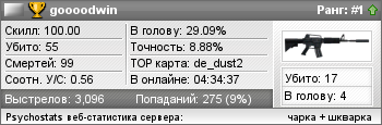 | de_dust4ever | 8 | 0 | 0.67 | 0.21 | 4 | 36 | 00:38:46 | 21-03-2010 | |